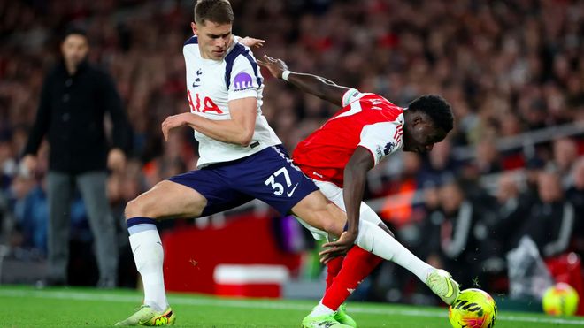 北京时间11月24日凌晨,英超第12轮北伦敦德比打响。身价13.1亿美元的阿森纳主场迎战身价9.2亿美元的热刺。在国际比赛日之前的最后一场联赛中,阿森纳2-2战平桑德兰,结束了各项赛事10连胜。最新积分榜上,阿森纳以3分优势领先只踢了一场比赛的切尔西,继续排名第一。热刺在两条战线上活跃,但表现却不尽如人意。热刺上轮联赛2-2战平曼联后,最近四轮比赛只赢了一场,目前排名第八。下周中两支球队将在欧冠赛场展开较量。阿森纳将在主场迎战拜仁,而热刺则将前往法国迎战卫冕冠军巴黎圣日耳曼。阿森纳在开场仅仅三分钟就踢出了一场精彩的比赛到游戏。萨卡开始进攻,埃泽跳投,赖斯的射门被维卡里奥挡出,险些造成丹索自摆乌龙。接下来的30分钟,德比大战显得十分无聊。除了萨卡的两次直接任意球外,两队继续打得淡漠。第37分钟,阿森纳对峙。梅里诺传球。特罗萨德进来,转身开枪。皮球被范德文挡出,滚入死角。四分钟后,轮到斯维门迪了。埃兹进入禁区并得分。枪手取得两球领先。上半场结束时,阿森纳8次射正4次,而热刺尚未射门0次。托特纳姆热刺准备在下半场开始时向西蒙斯而不是丹索祈祷,以加强其内线进攻。但阿森纳在第46分钟凭借闪电般的射门、廷伯的助攻和埃兹的梅开二度直接取得了胜利。第55分钟,帕里尼亚在中圈附近放倒斯维门迪,理查利森传球球。托特纳姆热刺队的第一脚射门就进球了。埃兹在第76分钟完成帽子戏法,特罗萨德助攻,特罗萨德还完成传球和射门。最终,共计投资13.1亿美元。 - 埃尔塞纳尔队以4-1赢得伦敦德比,九场比赛不败,将领先优势扩大到6分。总资产9.2亿美元的热刺本场比赛只出手3次,最近3场比赛只进1球。