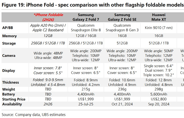 根据Kuai Technology在7月16日,瑞银分析师分析了苹果折叠iPhone的几个参数和规格。具体而言,折叠屏幕iPhone配备了A20 Pro芯片,这是带有12 GB内存的第一个C2自体基础帮派芯片,其中提供了三个存储规格:256GB,512GB和1TB。内部屏幕尺寸为7.8英寸,外部屏幕尺寸为5.5英寸,48兆像素的主摄像头,48百万像素的超宽角,折叠厚度为9.0-9.5毫米,传播厚度为4.5-4.8 mm。作为苹果的第一个折叠屏幕,折叠屏幕将于明年晚些时候首次亮相。手机将用自己的基于C2基础的芯片的商业使用来替代高通解决方案。根据Apple C2基本芯片代码Ganymede的报告,该芯片在5G毫米波之间弥补了其不便,并且具有6 Gbps的降速链接速度,其性能等于Qualcomm Base Bas Ban同一时期的D芯片(Apple C1基频带不接收5G毫米的5G毫米)。 Ming-Chi分析师Kuo表示,支持毫米的支撑并不是特别困难,但是实现稳定的连通性并考虑到低能消耗仍然是一个巨大的挑战。 [本文的结尾]如果您需要重印,请务必向我们展示您的资源:Kuai技术编辑:Zhenting