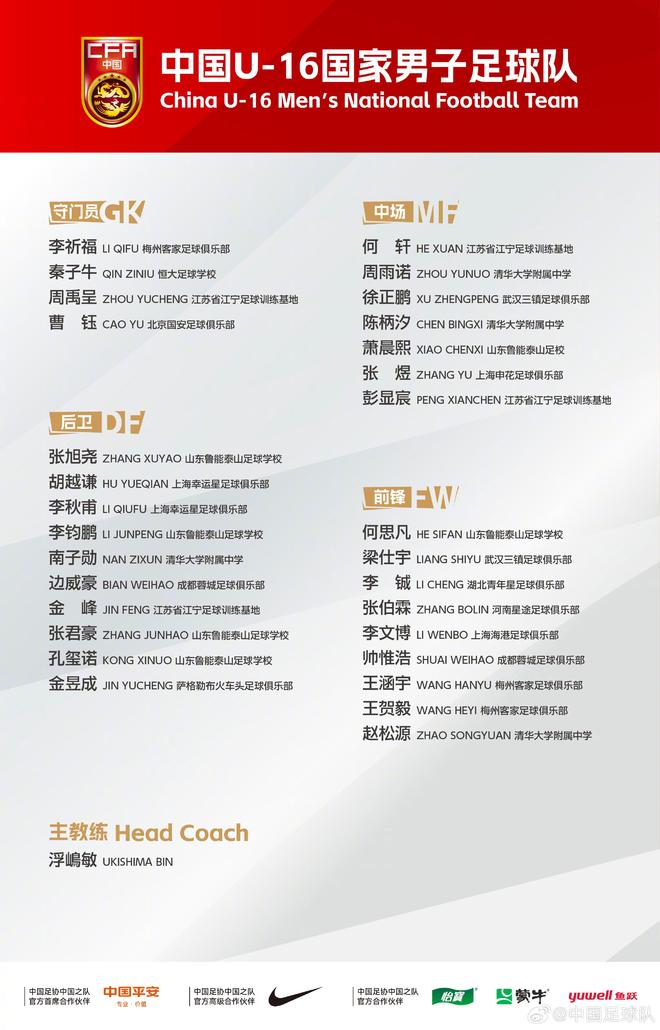 中国足球协会于9月25日在北京时代正式宣布了全国青年训练名单U16。该清单包括Luneng足球学校的六名成员和外国球员Kim Yu-Sung。中国足球协会在2025年为中国16岁以下男子足球队举行的第四次训练会议上的通知。为了为U17 2026亚洲杯预选赛做准备,中国足球协会已获得中国足球协会的批准,为2026 U17亚洲杯分类器做准备。 The fourth training session of the year will take place from September 30 to October 17. Related problems will be notified as follows: 1. List of training personnel (i) coach and management and support chief coach: Yang nan subdirector leader: Yue Yuchen Consultant: Gaosheng Assistant Coach: Cao Yang, coach ishikawawaeper coach of FiTness: Physical Conditioning Coach: Wu Mingkun Technical Analyst: Er Dang Yo, his team doctor: Feng Sheyang运动保护离子:邓·金·朗(Deng Jin Jin Long),邓·杨(Deng Yongs),邓·杨(Deng Yongs),邓·鲁伊(Deng Ruixin)桑本足球俱乐部:徐宗彭,梁·施尤Nan Zixun,Zhao Songyuan,Chen Bingxi Shandgxi Luneng Luneng Taishan橄榄球学校:Kong Xinuuo,I Sifan,Sifan,Sifan,Xiao Junpangi,Zhang Junap,Zhang Junap State Janning足球培训基地机车足球俱乐部:Jin Yucheng2。注册的时间和位置(i)1.2。运动员:2025年9月30日下午2:00之前。(2)江民国家足球训练基地。 3。f融合术语:中国足球协会将在培训或比赛中提供与培训人员的食物,住宿,运输,保险和其他方面相关的食物。 4。相关培训要求(1)培训现场参与者必须有意识地遵守“中国足球协会的法规”,《中国足球协会国家足球队管理》的规定以及国家队的相关法规,并严格遵守训练营期间团队的规则和领域。如果有违规行为,将根据法规对其进行认真对待。 (2)所有相关单位都必须提供帮助,并确保运动员参加时间和PA训练以检查并鼓励运动员在训练前进行身体和心理准备。对于那些因任何原因而无法参加训练营的人,他们的单位必须服从中国足球协会F或在2025年9月28日之前书写和电话批准,并根据中国足球协会的特定批准实施。 (iii)如果未经中国足球协会的批准,相关部队和运动员不参加国家队的培训或竞争,则相关文章将遵循“中国足球协会的学科守则”和“中国足球协会的身份管理法规和球员的转移”。金额将受到惩罚。 5。通知未完成的个人问题。中国足球协会2025年9月25日