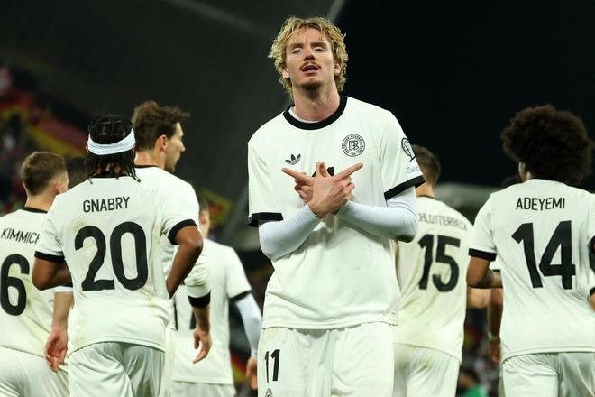 北京时间10月14日凌晨,一场万众瞩目的世界杯预选赛欧洲区A组比赛拉开帷幕。德国前往与北爱尔兰比赛。本场比赛,维尔茨的妙传被浪费,阿德耶米射门偏出,沃尔特·马德迟到时进球,德国队1-0领先。德国目前世界排名第12位。小组赛前三场比赛过后,他们2胜1负积6分。他们目前以净胜球优势排名第一,与北爱尔兰积分相同。因此,这将是一场备受期待的第一名争夺战。本场比赛,德国队首发十一人与上一场比赛相同。沃尔特·马德继续脱颖而出。中场由维尔茨、格纳布里、阿德耶米、格雷茨卡和帕夫洛维奇组成。防守四重奏由基米希、乔纳森·塔尔、施洛特贝克和劳姆组成,门将是鲍曼。第7分钟,维尔茨从右侧传球。格纳布里熟练地揉着脚后跟。戈雷茨卡倒在地上躲避射击。德国将军要求判罚点球,但裁判认为正确。第14分钟,法雷尔在防守区内送出长传,麦克奈尔头球顶出。德国队球门前一片混乱。巴拉德射门很近,但不幸的是他的队友被判越位,让德国队逃过一劫。第20分钟,维尔茨试图传中但被拦截。帕夫洛维奇随后射门,球高出横梁。德国队在第31分钟打破了平局。劳姆传出角球,沃尔特·马德接球头球破门,1-0。沃尔特·马德在夏窗以7500万美元加盟纽卡斯尔,被怀疑是水货,但在8场正式比赛中打进5球。第43分钟,加尔布雷思左路开出,杰米·里德将球推高。德国队几乎追平比分。即使到了下半场,德国队仍继续拖慢对手的步伐。第47分钟,维尔茨反击,用手术刀击球。不幸的是,阿德耶米一推就错过了球。第61分钟,德国队防守区内出现失误,加尔布雷斯断球后抽射偏出。第70分钟,格雷茨卡突破中路送出斜传。格纳布里的射门角度不佳,但被北爱尔兰门将勇敢扑出。第85分钟,加尔布雷斯禁区外一脚远射高出横梁,让德国队惊出了一身冷汗。第90分钟,德莱尼右路传中,马歇尔近距离射门。鲍曼做出了一次关键扑救,保住了进球。最终,德国顶住北爱尔兰的猛烈反扑,将1-0的比分保持到决赛,轻松拿下三分,实现世界杯预选赛三连胜。随后他们以净胜球优势击败排名第一的斯洛伐克队,夺得冠军。领先直接晋级世界杯。